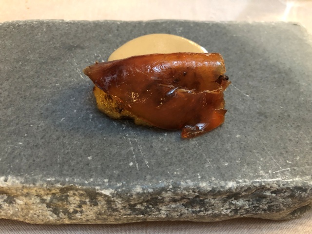- Aperitivo : Pan y mantequillas de la casa, Sardina y escalivada, Calamar, holandesa y tomillo, Champiñón y Idiazábal trufado.