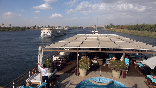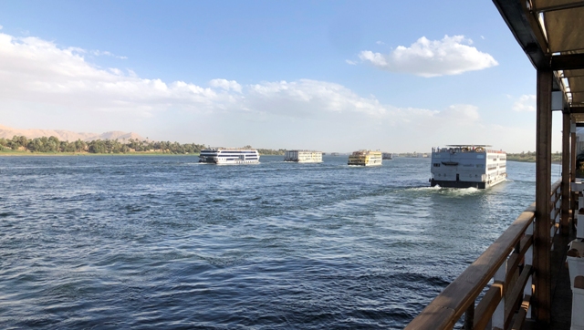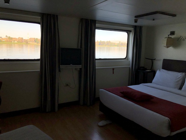 Al llegar a Luxor, nos trasladamos hacia el crucero para realizar el Chek-in. El inconveniente fue que el amarre del crucero no estaba en la ciudad si no a casi 10 kilómetros de distancia de esta lo que no nos facilitó el poder salir a pasear por la ciudad. Almorzamos en el bufet libre esperando que llegará la tarde para realizar la visita a Lúxor.
