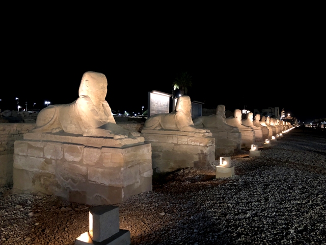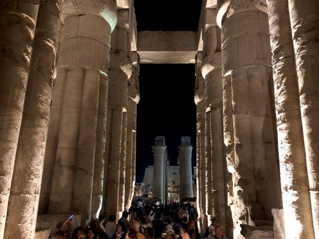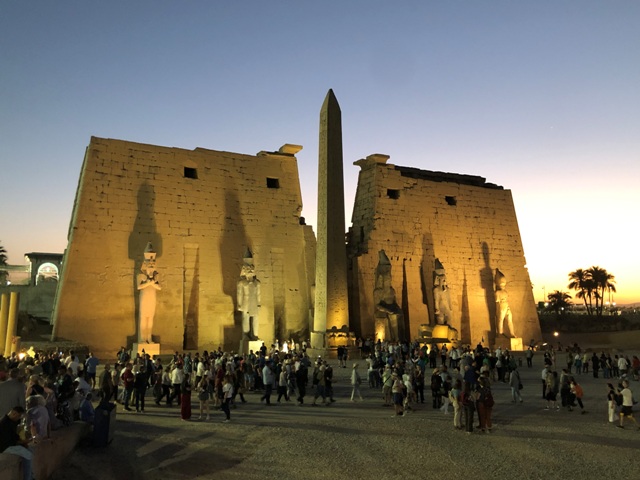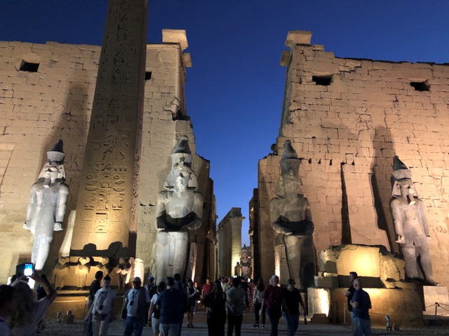 Al atardecer visitamos el templo iluminado de Lúxor, una construcción realmente impresionante, con el añadido de que al anochecer  tiene un misticismo muy especial.
