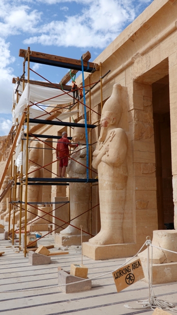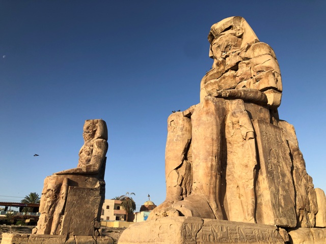 Nos levantamos a las 5 de la madrugada para desayunar a las 5:45 y salir en autocar hacia la orilla occidental de Tebas, conocida por los egipcios como Imentet en waset, en la primera parada visitamos los Colosos de Memnón estuvimos unos 15 minutos para la explicación, fotografías y poco más.