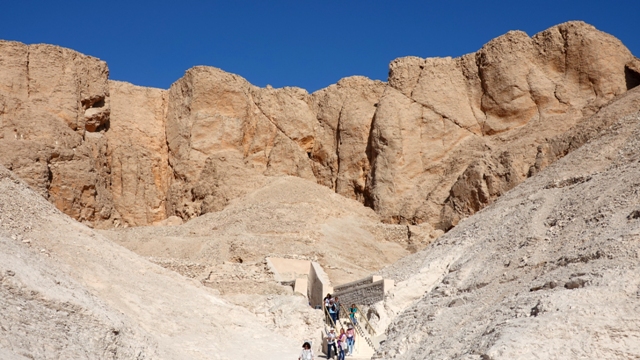 Seguimos hacia el Valle de los Reyes, un trayecto de unos 45 minutos desde Luxor, al irnos acercando observamos en las inmediaciones decenas de excavaciones en busca de nuevas tumbas y de mejora de algunas ya descubiertas, nos impresionó ver la gran cantidad de aberturas que se veían por el camino.