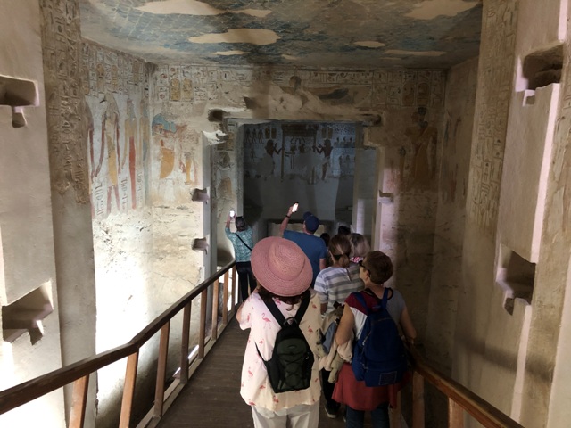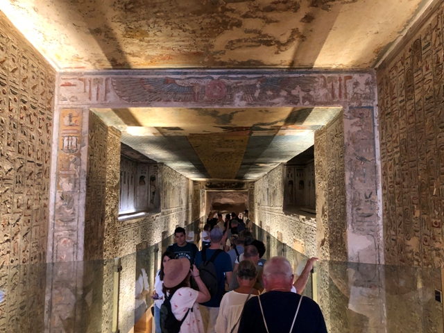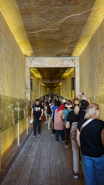 Recorrimos su larguísimo y bellamente decorado pasadizo repleto de turistas para poder llegar hasta la sala donde encontraron la tumba. Los pasadizos y las salas son realmente impresionantes con unas decoraciones que sorprende lo bien conservadas que están después de tantos años. No me llego a imaginar las sensaciones que debieron experimentar los arqueólogos que las descubrieron, encontrar tales tesoros arqueológicos tiene que ser el sumum .