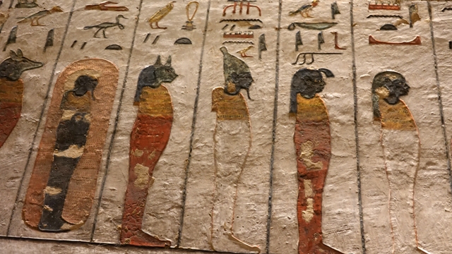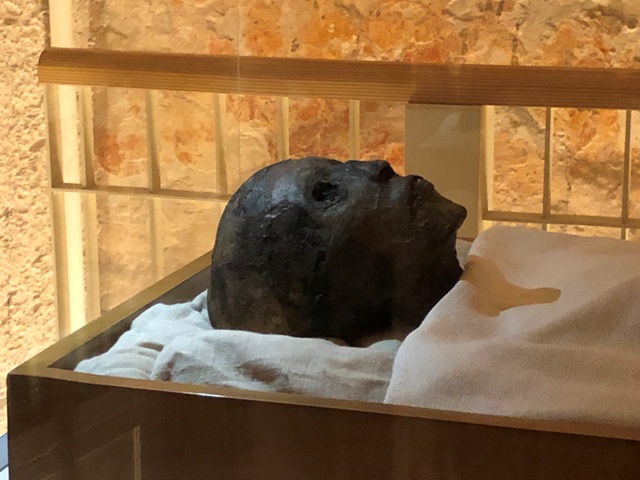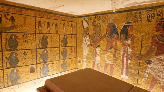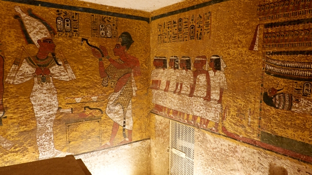 Al final del pasadizo nos encontramos con la momia de Tutamkamón expuesta en una vitrina y un poco más adelante la sala de la tumba, en la que era realmente difícil alcanzarla y poder realizar alguna fotografía en mitad del tumulto turístico y de selfies, pero con paciencia todo se consigue.