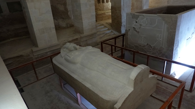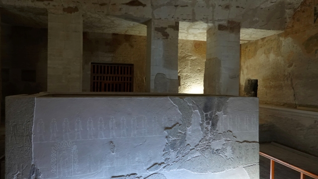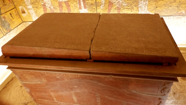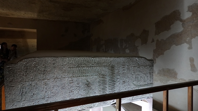 La siguiente tumba que visitamos fue la del faraón Merenptah, también con los pasadizos decorados con jeroglíficos coloreados pero en menor medida que la anterior de Ramses III, sorprende lo bien conservados que están los colores todavía después del transcurso de miles de años en todos los pasadizos, lo más interesante de esta tumba es que al final del pasadizo se conserva el sarcófago de piedra y el contenedor con algunos jeroglíficos.