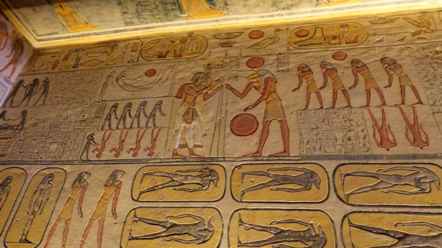 Iniciamos con celeridad la visita de la tumba de Ramsés IX, cuyos pasadizos y salas también estaban muy decorados e interesantes, sinceramente todas la tumbas que visitamos eran espectaculares, no sabría decir cual es mejor.