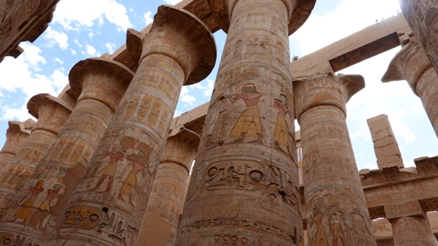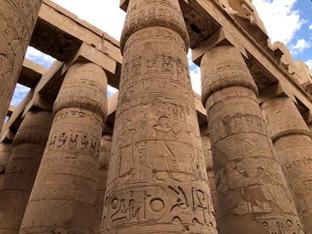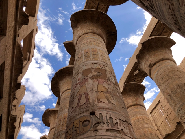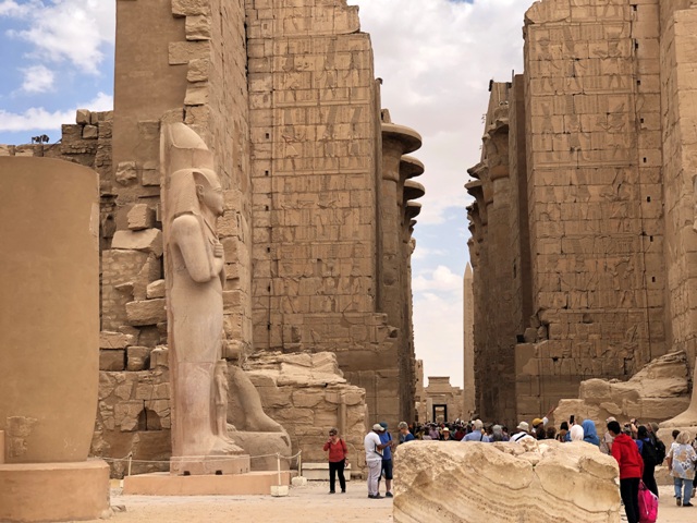 Más de treinta faraones embellecieron y ampliaron durante cerca de dos mil años el complejo de Karnak, donde el templo principal está dedicado al dios Amón, el gran dios del imperio nuevo, en el amplio complejo podremos encontrar los templos de Amón-Ra, el de Montu, el de Mut, el de  Opet, el de Ptah y el templo de Jonsu. Por desgracia no tuvimos suficiente tiempo para verlo al completo tal y como nos hubiera gustado.