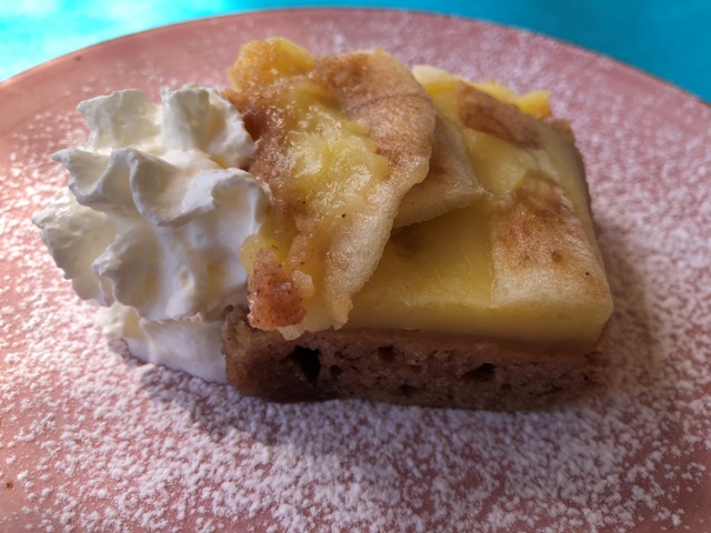 De postre nos comimos un Brownie con helado de vainilla y una Tarta de manzana.