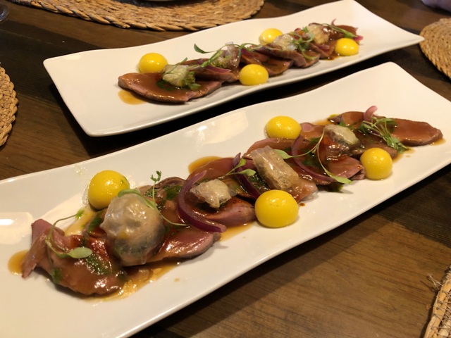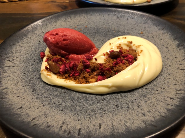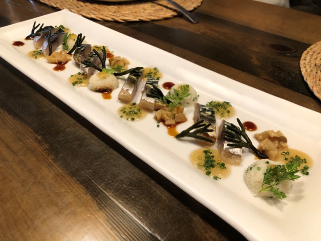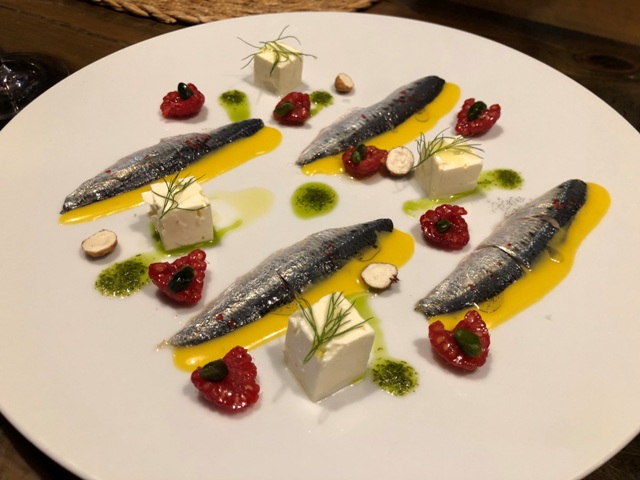 Sardinas marinadas, frambuesas, vainilla y escabeche de mandarina