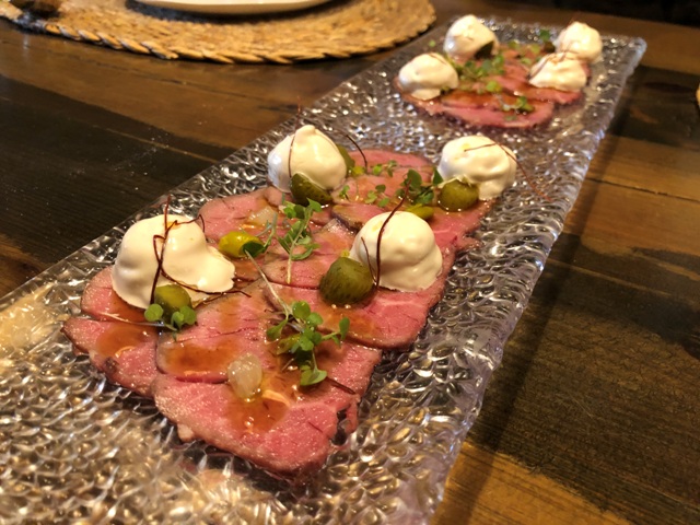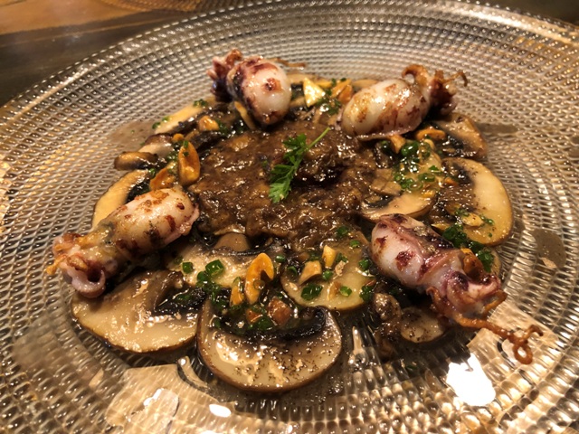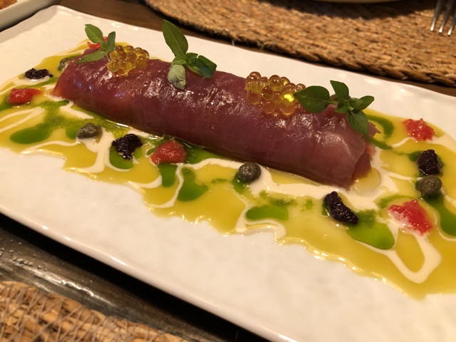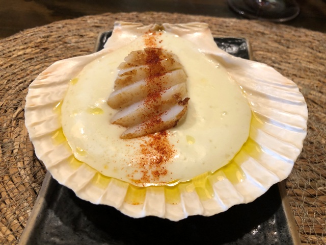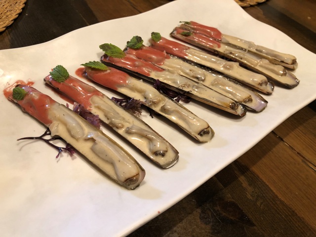 Una vez sentados en nuestra mesa, nos ofrecieron la opción de elegir entre la selección de platos de la carta o el Menú Degustación, que está compuesto por un cóctel y un aperitivo + 8 platos + 2 postres + Vino + Copa de cava + Café o infusión + Agua + Pan, por el interesante precio de 95 euros, opción por la que optamos en nuestro caso.