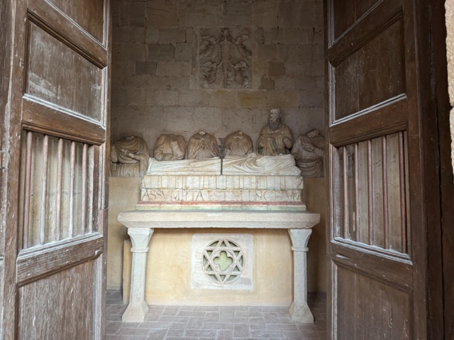 Al llegar a Santes Creus, aparcamos en la zona habilitada junto a la carretera y nos dirigimos hacia el monasterio para comprar la entradas y realizar la visita.