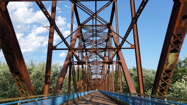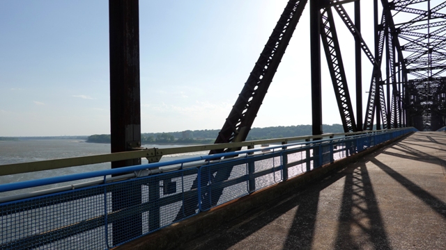 Como veníamos de Chicago por la ruta 66, decidimos antes de entrar al centro de la ciudad de Saint Louis, visitar el puente Old Chain of Rocks Bridge, que forma parte de antigua ruta 66, actualmente es tan solo peatonal.