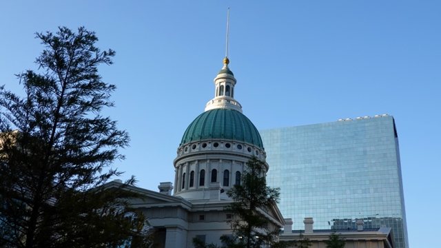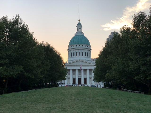 Para regresar al aparcamiento pasamos frente al Antiguo palacio de Justicia, donde tuvieron lugar los juicios de los esclavos Dred y Harriet Scott que solicitaron su libertad y donde la activista del sufragio femenino Virginia Minor luchó por el derecho al voto de las mujeres.