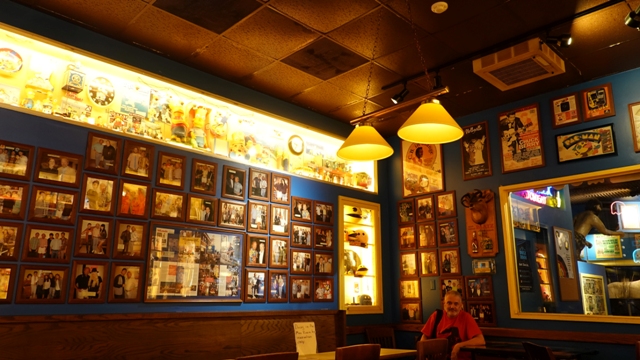 Cogimos el coche para desplazarnos hasta el The Loop donde paseamos por el Delmar Boulevard y fuimos a cenar al Blueberry Hill, un original local donde solía actuar Chuck Berry, se come bastante bien y el local vale mucho la pena, con su decoración ochentera repleta de figuras, jukebox y zona de dardos.