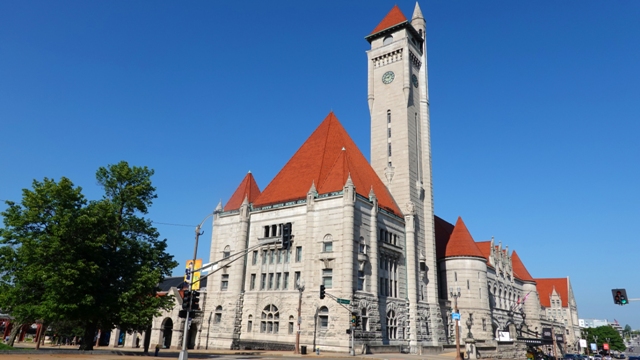 Seguimos por la calle N Broadway hacia el antiguo palacio de Justicia, pasando frente al Museo de la Reserva federal hasta llegar a la plaza Kiener Plaza Park.
