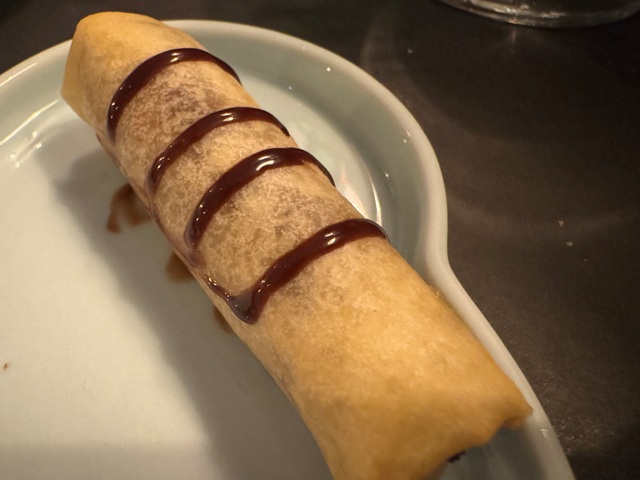 Mochi de te verde y rollito crujiente de plátano con chocolate