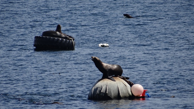 Desde allí salen barcos para ir a observar ballenas, desde el muelle, mientras contemplábamos el paisaje, pudimos ver varios leones marinos (focas) jugueteando con las boyas, que ademas tenían varios pelícanos alrededor, todo el recorrido se hace a pie pues no es demasiado grande.