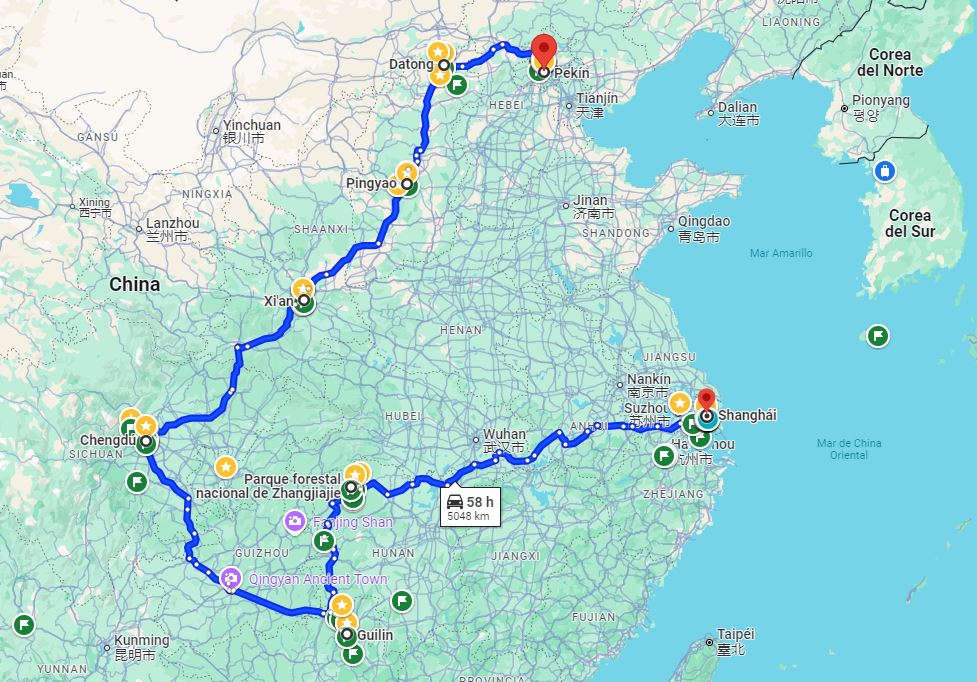 Para definir la ruta nos dejamos aconsejar por nuestro hijo, su pareja y por Juana, la organizadora de China Highlights, que casualmente coincidieron en la mayoría de destinos que nos recomendaron para las tres semanas de ruta (con los vuelos incluidos destinamos al viaje 23 días), en el caso de nuestro hijo y su pareja, destinaron un mes en el recorrido puesto que al tener que depender de transportes por libre el viaje se hizo más lento .