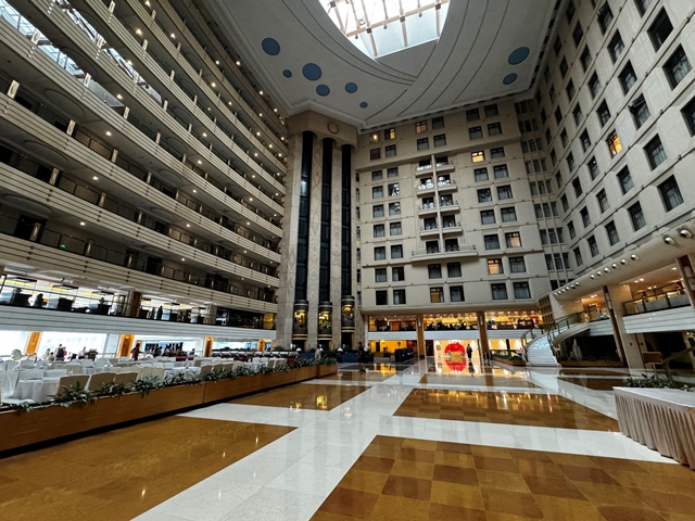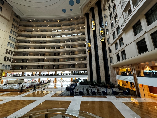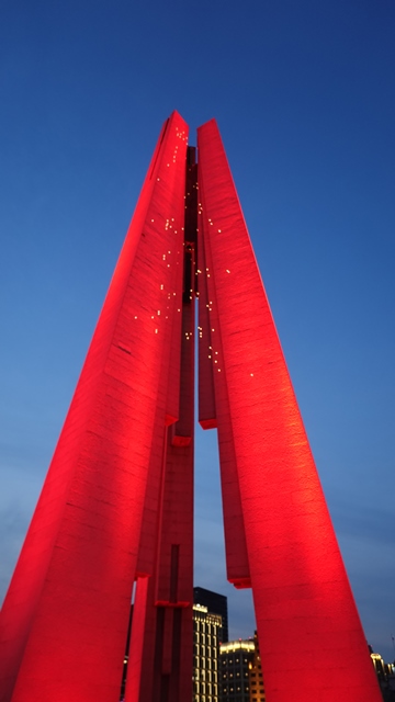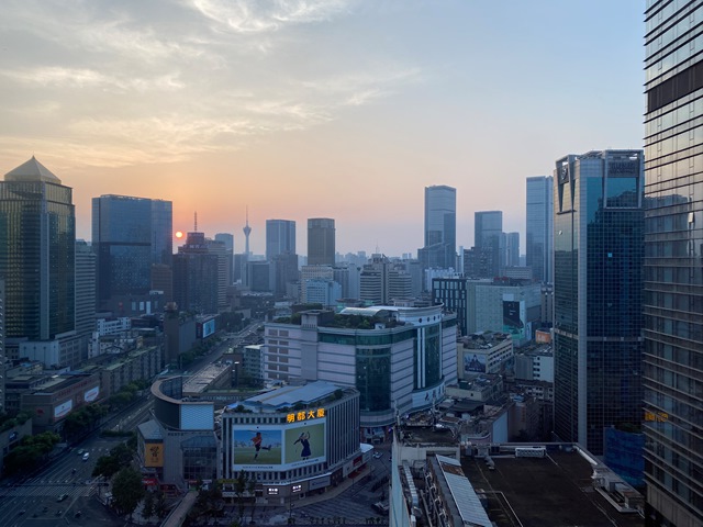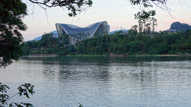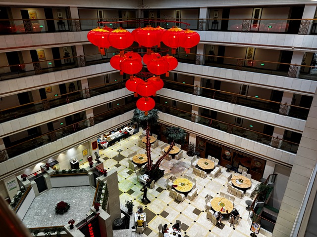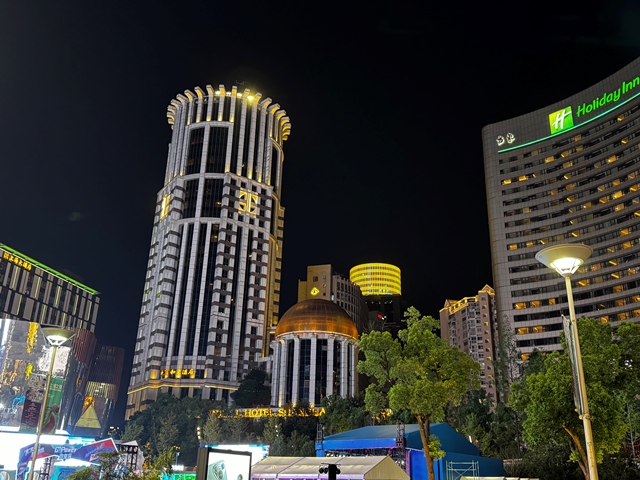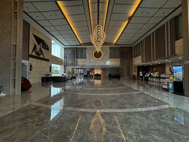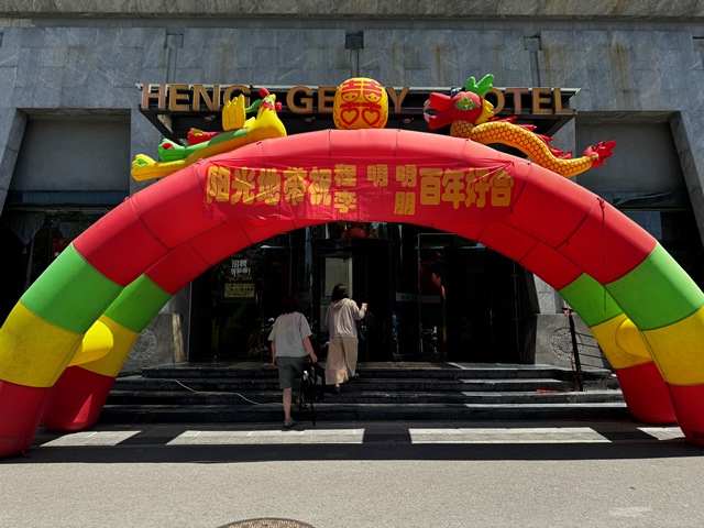 Este hotel de 5 estrellas en color dorado con forma de una esfera gigante, representa el sol , encontrando en su lado opuesto a la plaza la luna, que es en realidad es un gran teatro, ambos situados a orillas del río Qianjiang, fue construido en 2004 convirtiéndose en un símbolo de la Hangzhou moderna.