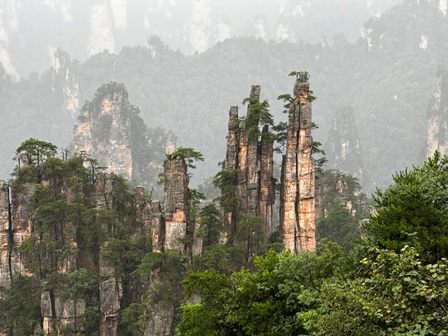 La ciudad de Zhangjiajie se hizo famosa a raíz de la película Avatar, gracias a que James Cameron se inspiró en el Parque Forestal Nacional de Zhangjiajie para dibujar las montañas de los hombre azules, los Navi. Estuvimos 3 noches para poder visitar el Parque Nacional de Zhangjiajie, la Montaña Tianzishan, el Lago Baofeng, el Gran Cañón de Zhangjiajie con su Puente de Cristal, que dicen es el más largo del mundo, la Montaña de Tianmen y la Puerta del Cielo.