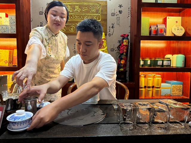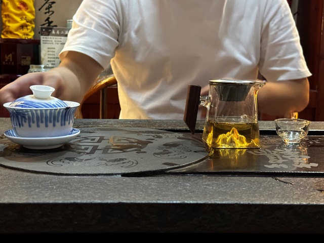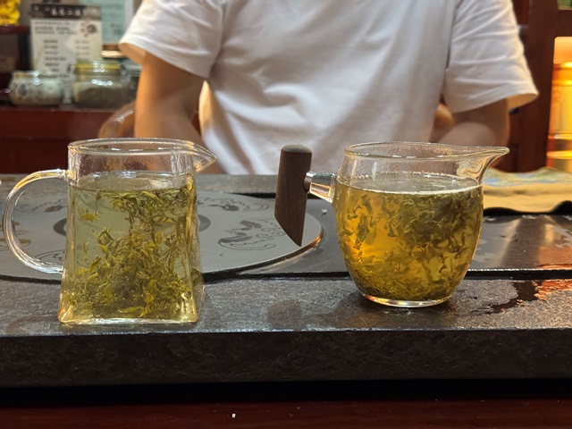 Visitamos una de las plantaciones de té verde, donde nos explicaron su elaboración e hicimos unas degustación, con la ceremonia tradicional del té chino, explicándonos sus beneficios purificadores para el cuerpo.