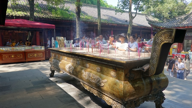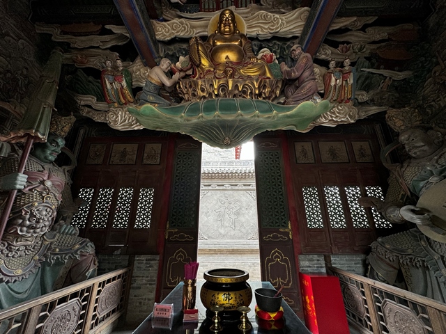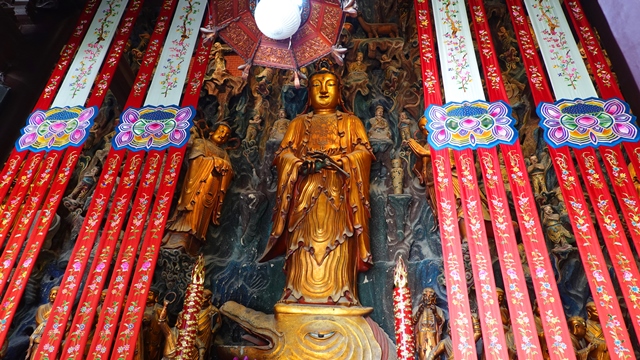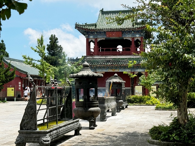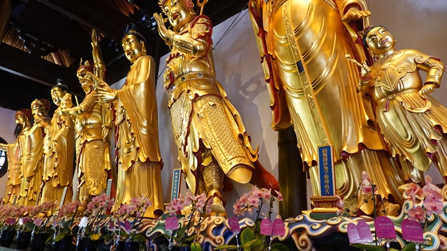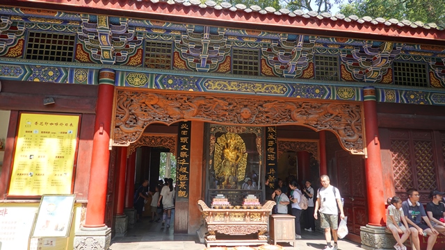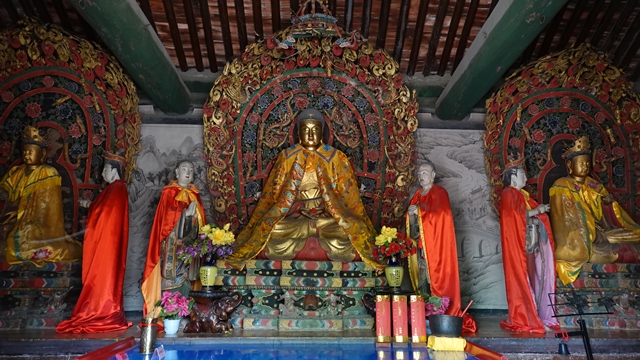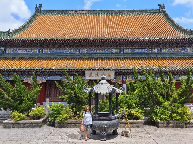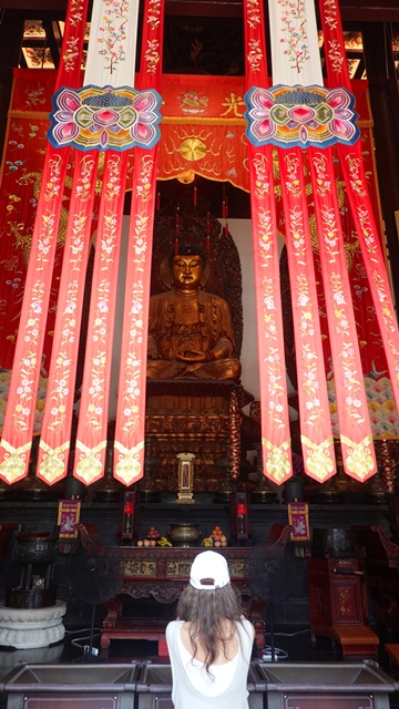 Los templos que visitamos son, el Salón de los Reyes Celestiales donde su estatua principal es la Buda Maitreya y en la parte trasera el Bodhisattva Skanda. El Salón de Buda de la Medicina, con varias figuras de Buda de la Medicina.