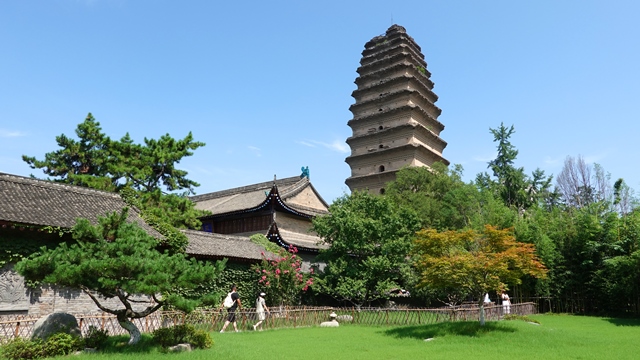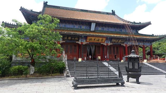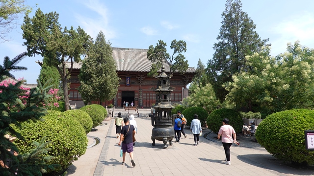 El templo que se visita actualmente es del siglo XIX, al final de la dinastía Qing, destacando el Salón de Mahavira de 33 metros de altura, y la estatua de Sakyamuni tallada en 24 piezas de madera de alcanfor.