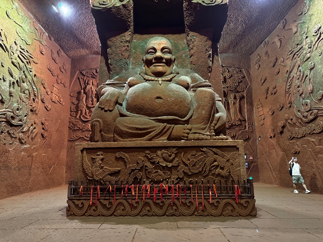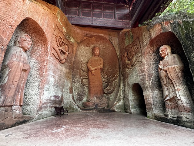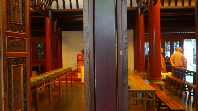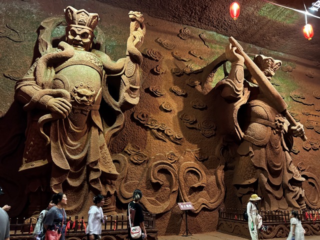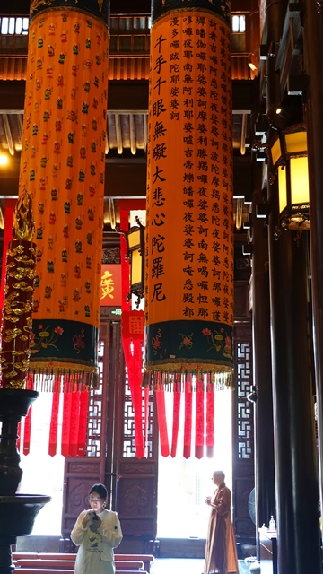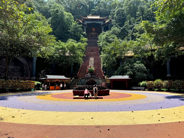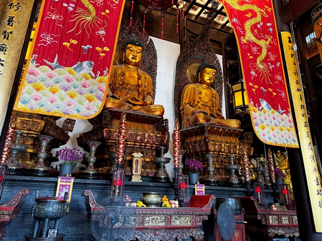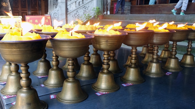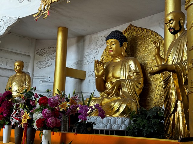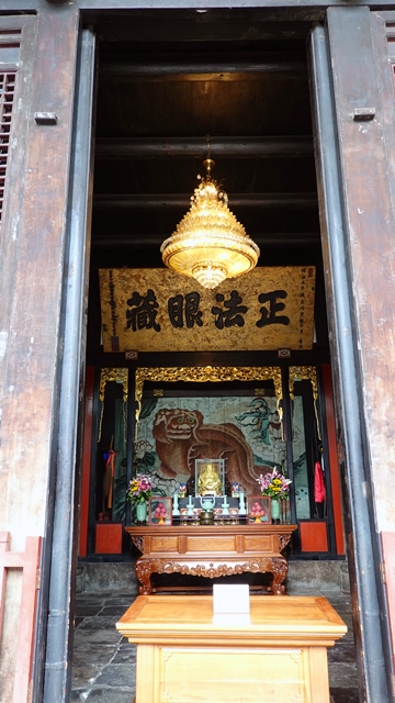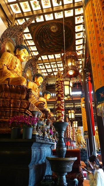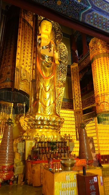 El Gran Salón del Gran Sabio, en una gran sala de 33 metros de altura, donde se encuentra la figura del Buda Sakyamuni tallado en 1956 en madera de alcanfor siendo la mayor estatua budista de madera en China y el Salón de Quinientos Arhats, edificado en 1990, en la que pudimos ver más de 500 estatuas de bronce sentado de Arhats. Una lástima no poder plasmarlo en fotos.