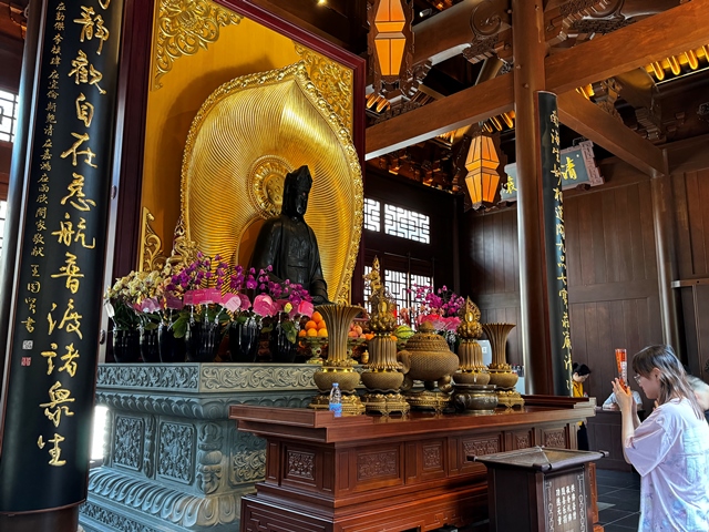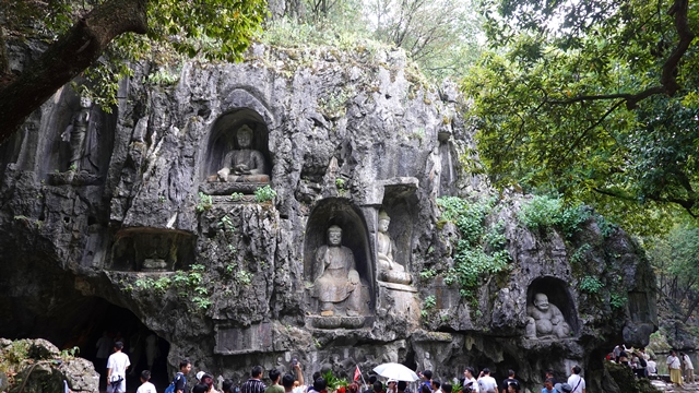 Tras la comida, visitamos el Templo del Alma Escondido , conocido como Templo Lingyin, uno de los diez más famosos antiguos templos budistas en China. Fue fundado en el año 326 a.C. por el monje Hui Li en su camino de peregrinación a la India, al pie de la montaña de lingying.