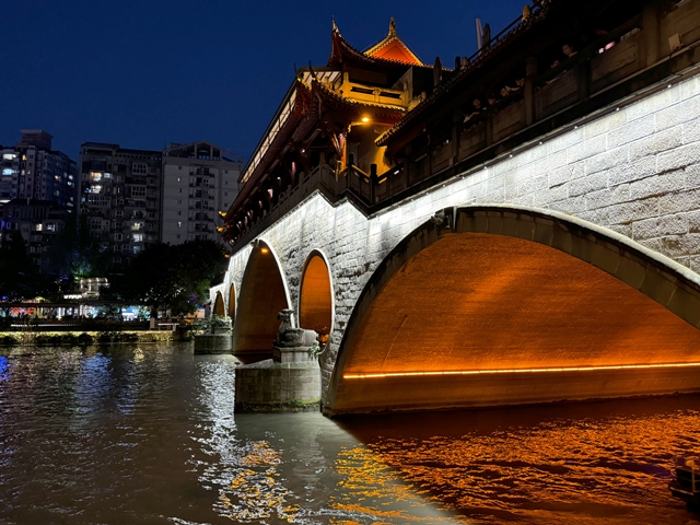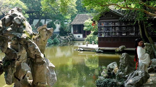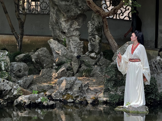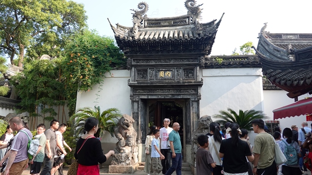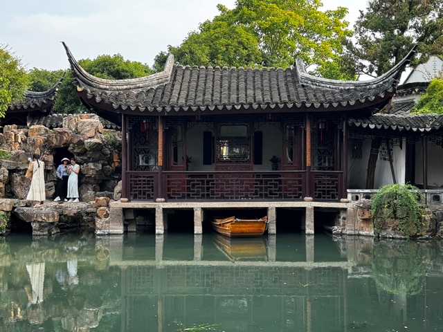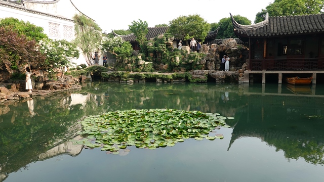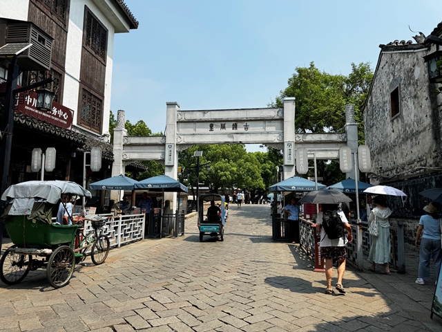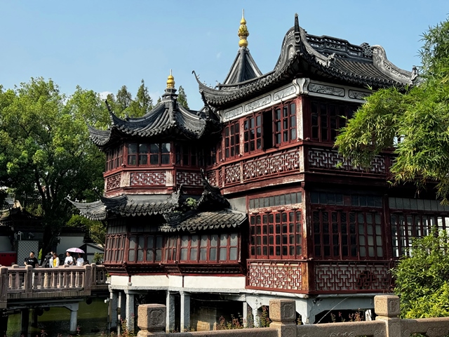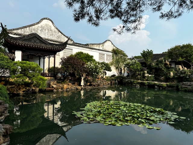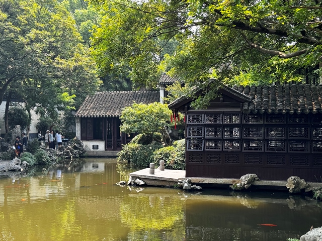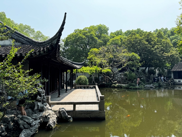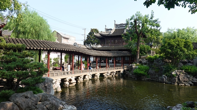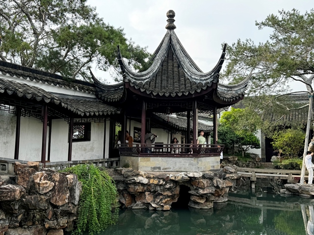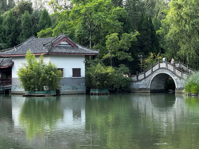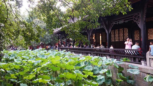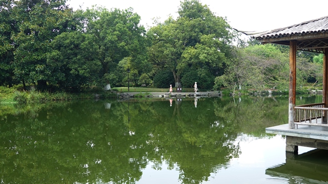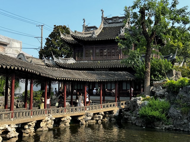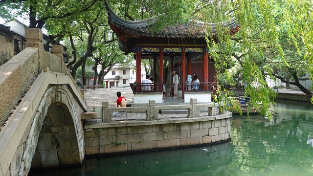 Visitamos el Pabellón Yinying, atravesando varios puentes que cruzan los canales del lago, un lugar muy bucólico si no fuera por el calor que nos acompañaba durante la visita.