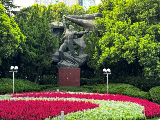 Es la plaza más importante de la ciudad, reuniéndose en ella miles de shanghaineses para realizar sus actividades preferidas, fue construida sobre un antiguo hipódromo, el inconveniente en nuestro caso fue que como acaba de diluviar, estaba casi vacía, apenas habían una decena de personas por allí.
