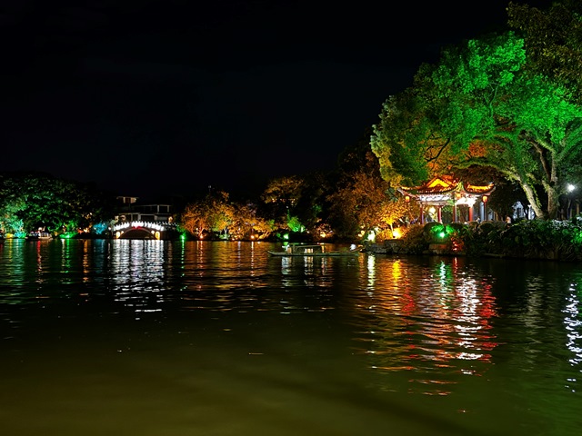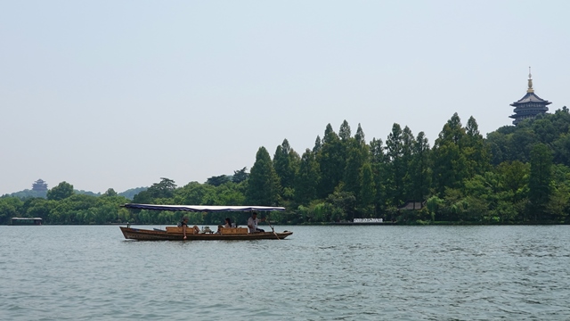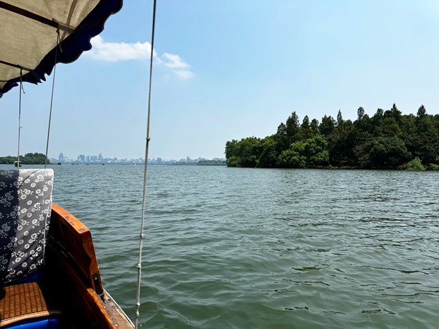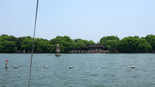 Salimos inmediatamente hacia nuestro primer destino, el Lago del Oeste. Este lago mencionado por poetas y artistas desde el siglo IX, dispone de varias islas, con templos, pabellones, jardines y puentes arqueados.