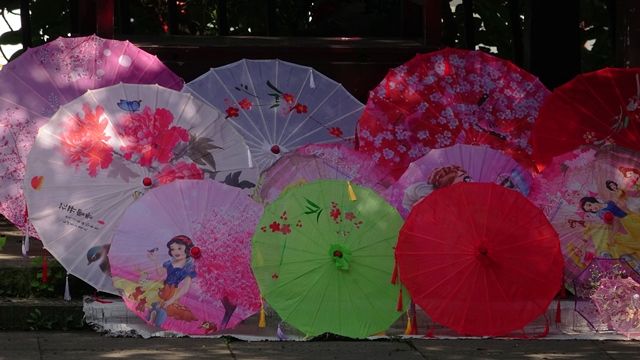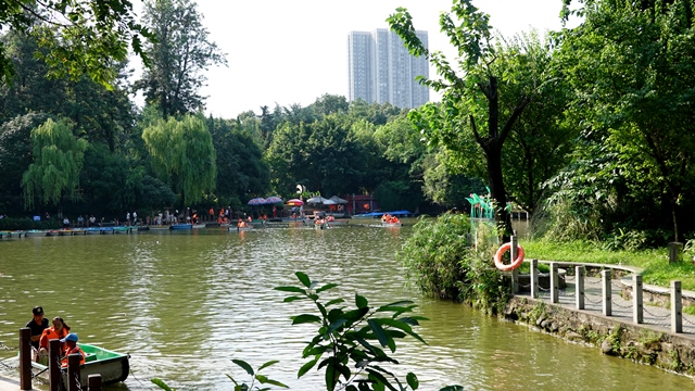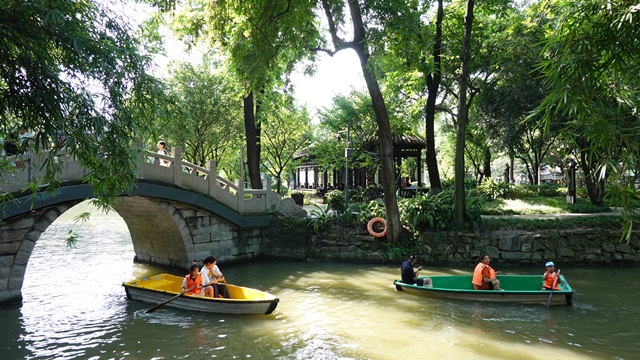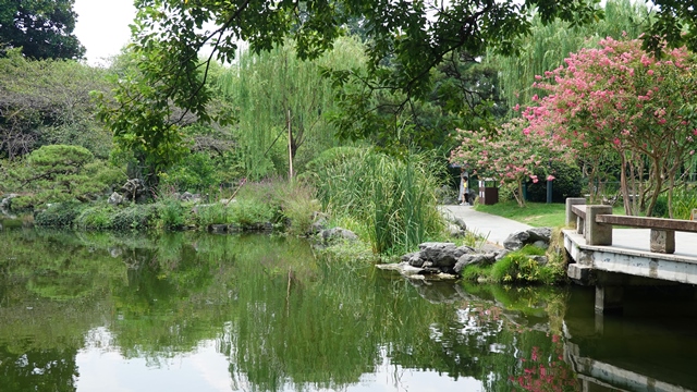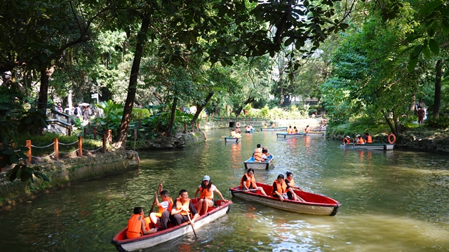 Paseamos por el Parque Taiziwan, frente al lago Nan, repleto de nenúfares y flores de loto, donde los turistas navegan con las pequeñas barcas de madera.