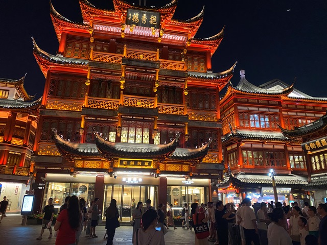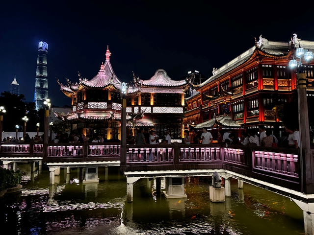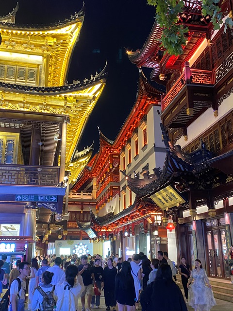 Tras un descanso en el hotel, fuimos en metro hacia el Mercado de Yuyuan, para disfrutar del ambiente nocturno y hacer unas cuentas fotos y videos de la zona de noche, que con sus casas tradicionales iluminadas tiene un encanto muy especial.