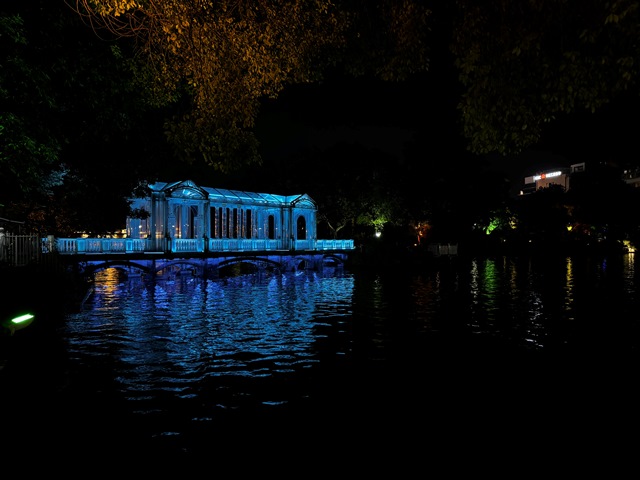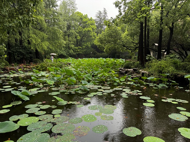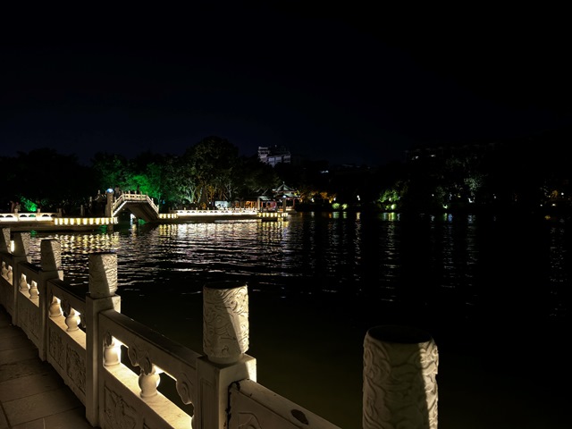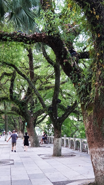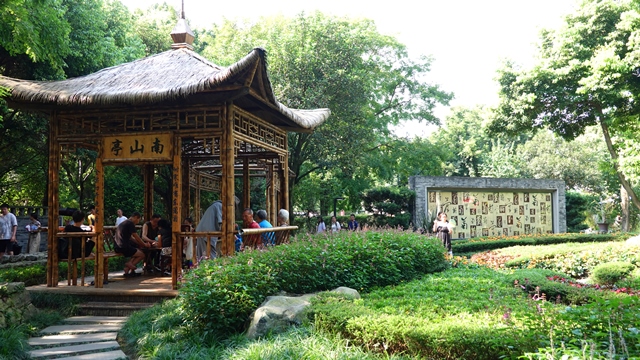 Al desembarcar hicimos un paseo por el parque del lago de oeste, que ocupa un área de 5,6 kilómetros cuadrados, siendo el principal atractivo para el turismo local de Hangzhou. Visualmente destaca sobre la colina la Pagoda Leifeng de 5 pisos de altura, aunque es una reproducción actual, tiene su encanto.