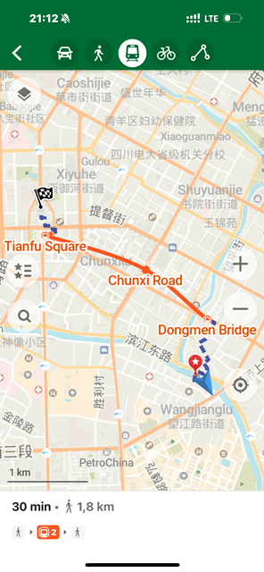 Para los trayectos a pie o en coche, siempre y cuando tengáis un VPN instalado en el móvil, utilizamos el Google Maps que es el más utilizado en occidente, pero tened en cuenta que los transportes públicos no están habilitados en China por lo que para ello tendréis que utilizar el Organic Maps .
