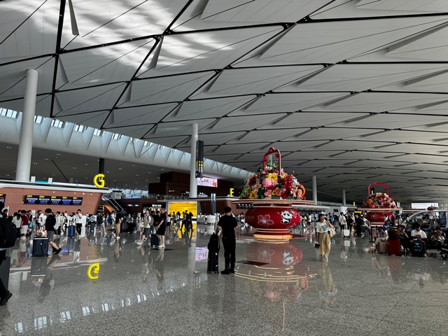 Para ponernos más nerviosos, cuando facturamos la maleta, nos saltó la alerta de que llevábamos algo no permitido, en todos los aeropuertos de China, siempre hay que esperar 5 minutos para que te den el ok de la maleta facturada, nos dirigimos acompañados de Francisco al lugar de chequeo de maletas, donde nos dijeron que quizás era un error de la máquina, que volviéramos a la cinta a facturar otra vez, así que fuimos a toda prisa para facturar la maleta, menos mal que estaba Francisco con nosotros, porque casi nadie hablaba inglés por allí.