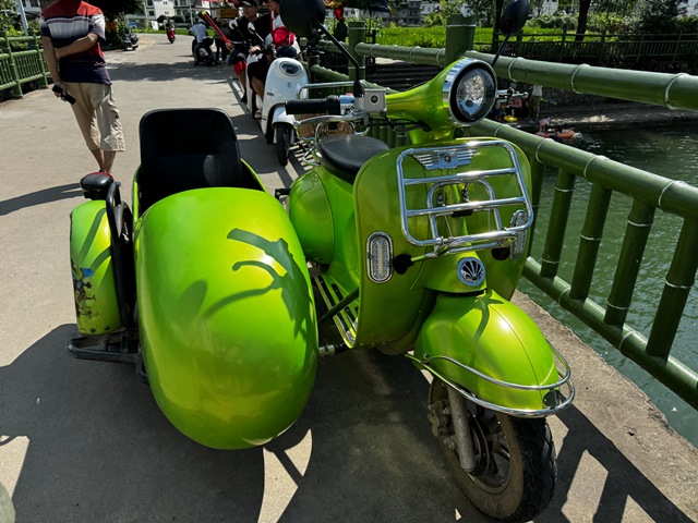 Olga nos llevó al embarcadero donde cogimos una barca de madera para nosotros solos y navegamos por el lago, el único inconveniente fue que en teoría teníamos incluida la visita a la isla de las hadas, al comentárselo a Olga, nos dijo que como íbamos en una barca de remos no llegan a la isla para visitarla, para la visita de la isla teníamos que haber ido en una eléctrica. Bueno, aceptamos pulpo como animal de compañía, total estábamos casi al final del viaje y ya habíamos visto una infinidad de jardines y templos.
