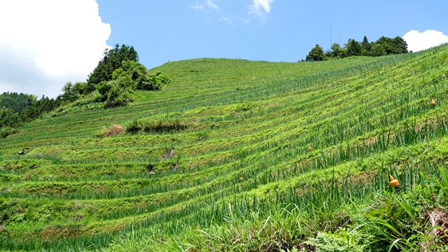 Para llegar a las Aldeas del té, tan solo cruzamos con el coche un túnel y aparecimos de repente en mitad de una zona repleta de plantaciones de té, es sorprendente el cambio tan radical del paisaje en apenas unos segundos. Es una de las zonas más importante de producción de té en Zhejiang, en él se encuentran 160 productoras de cultivo de té, destacando el té de pozo del dragón, conocido como el mejor té verde en China