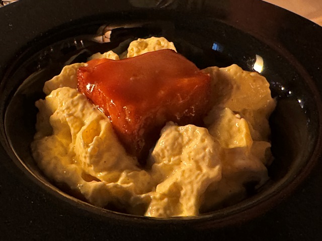 mantequilla blanca con mejillones de roca y gnocchi de azafrán