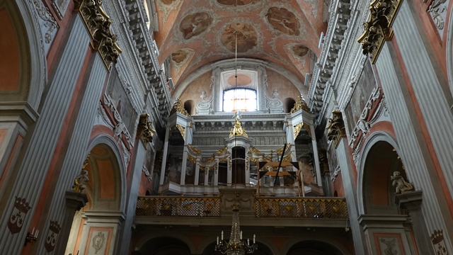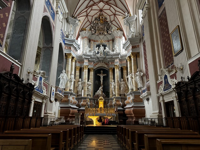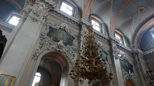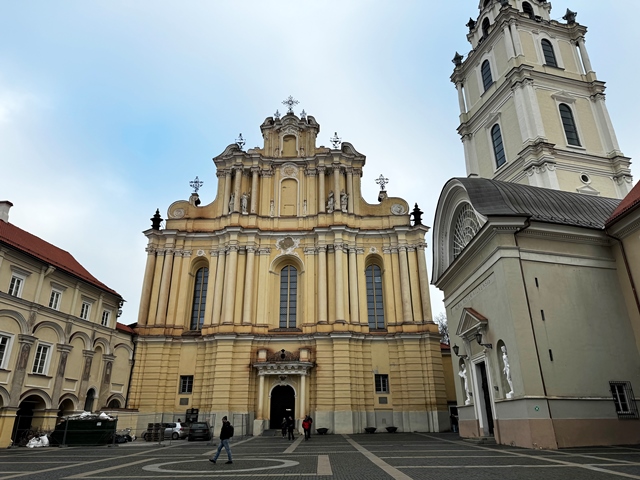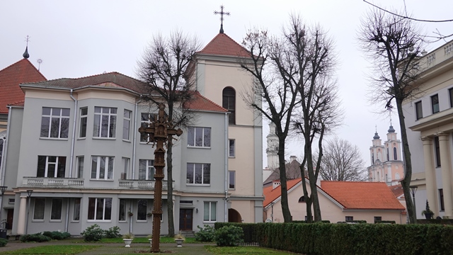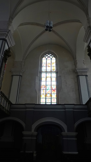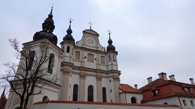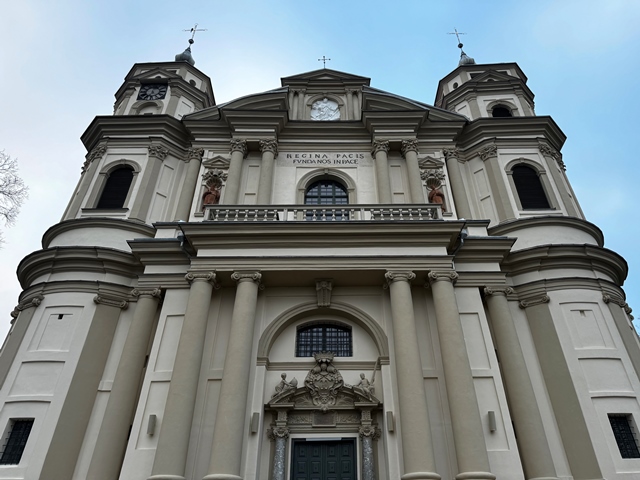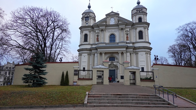 La primera visita que hicimos fue la de la Iglesia de San Pedro y San Pablo, situada frente a la Plaza de Juan Pablo II, en el barrio de Antakalnis. El templo fue construido en estilo barroco tardío, iniciando su construcción el año 1668 y finalizada el año 1701 por encargo del duque Michał Kazimierz Pac. Los arquitectos encargados de la obra fueron Jan Zaor y GIovanni Battista Frediani.