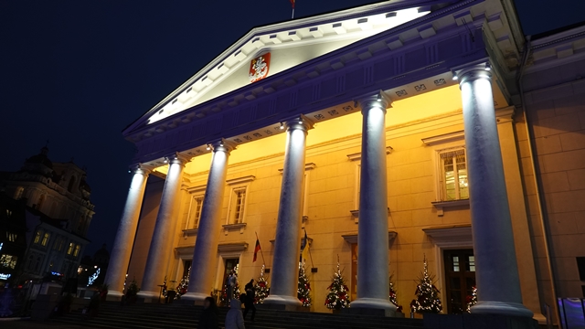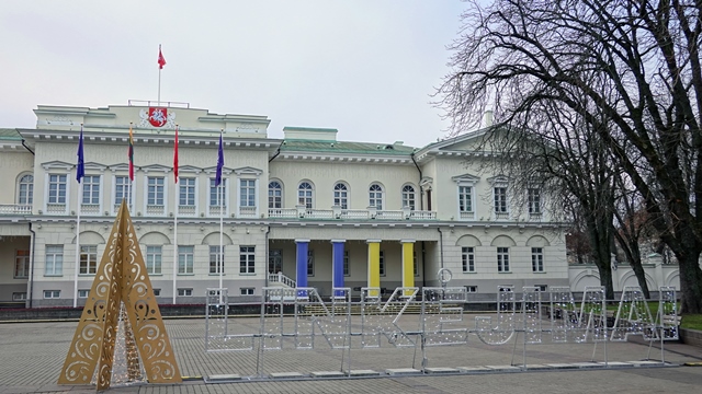 Dejamos atrás la plaza de la catedral para subir por la calle universidad, pasando frente el Palacio presidencial, sede de la oficina oficial del Presidente de Lituania desde el año 1997.