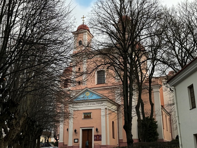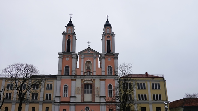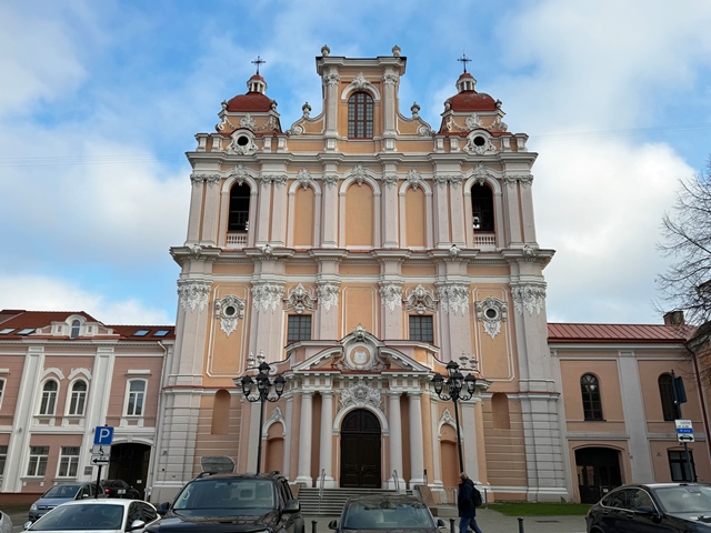 En nuestra ruta pasamos frente a la bella Iglesia de San Casimiro, construida en estilo barroco en 1604, siendo consagrada por el obispo de Vilna, Benediktas Vaina en 1635, con su caribeña fachada de color rosa.