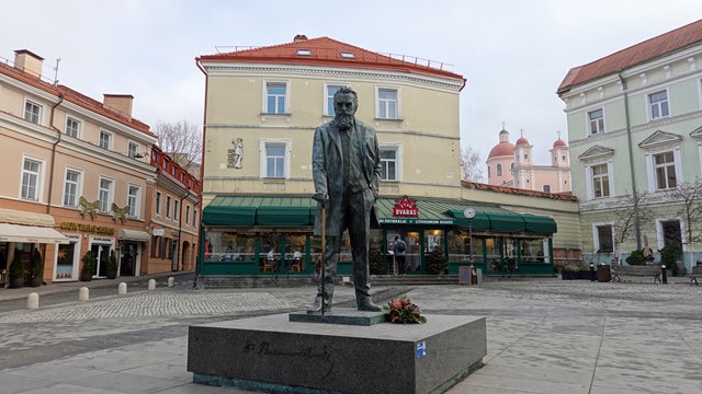 Pasamos por la plaza donde fotografiamos la estatua del Doctor Jonas Basanavičius, activista y defensor del Renacimiento Nacional Lituano.