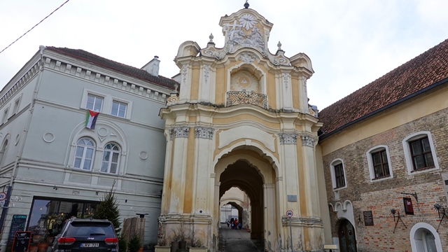Nos acercamos hasta la Puerta de entrada a la antigua ciudad de Vilna, fue construida en 1503 formando parte de la muralla defensiva de la ciudad, dicha puerta daba acceso al camino que llevaba a la aldea de Medininkai, actual Varniai, al sur de Vilnala.