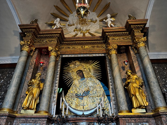 Para acceder a la capilla de la Puerta del Alba entramos por la Iglesia Santa Teresa, construida en 1760 sobre los restos de una capilla de madera edificada por las carmelitas descalzas de Lublin en 1627.