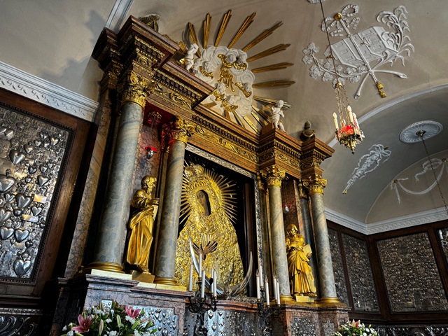 La capilla de la Puerta del Alba contiene un icono de la Santísima Virgen María, Madre de la Misericordia, de la que se dice tiene poderes milagrosos, precisamente cuando la visitamos habían varios feligreses orando frente a ella.