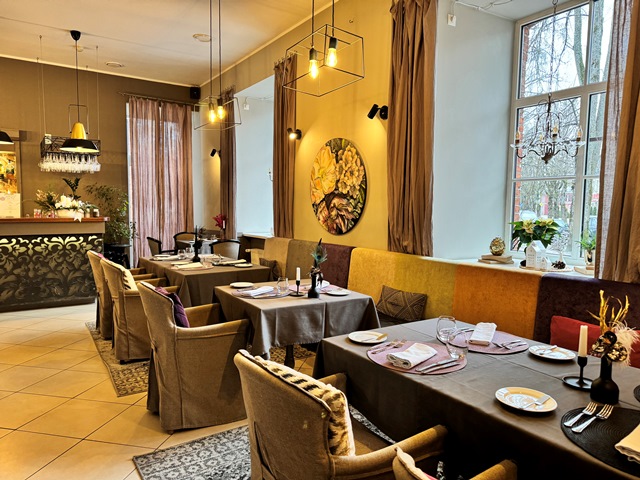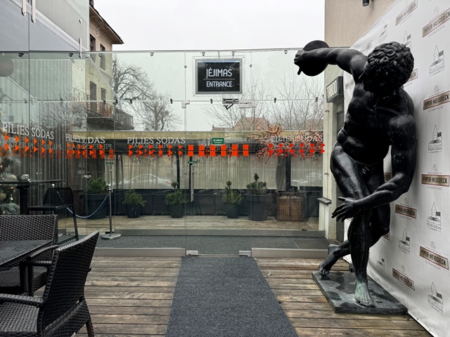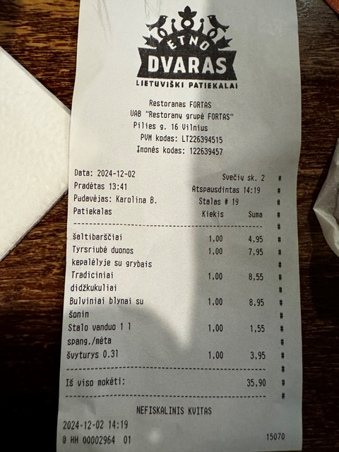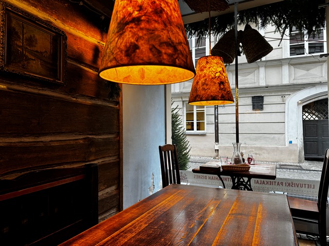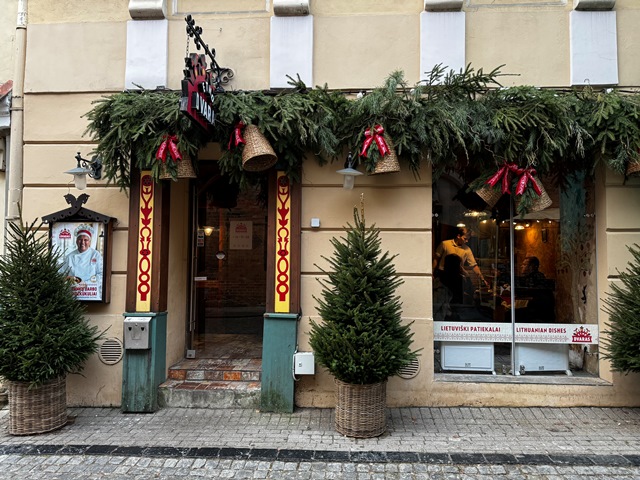 Al salir de la capilla de la Puerta del Alba dimos por finalizadas las visitas de la mañana, paseando un poco más por las callejuelas del casco histórico, dirigiéndonos hacia el restaurante que habíamos elegido para comer, que fue el Etno Dvaras, situado en la calle Pilies, 16, en la calle que lleva de la plaza del ayuntamiento a la plaza de la catedral.
