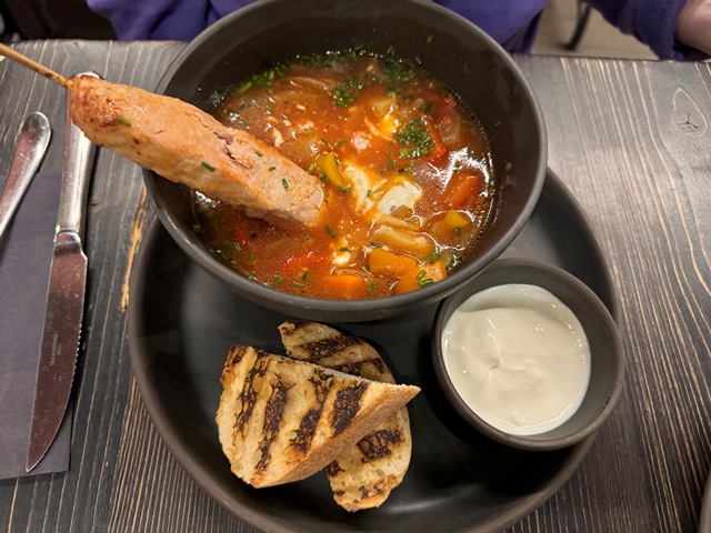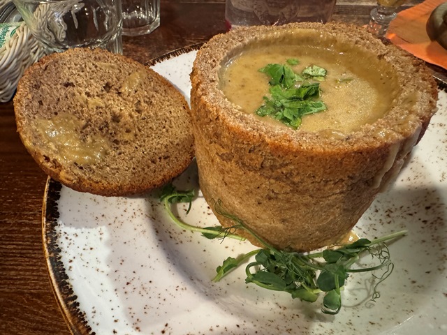 Comimos excelentemente, uno de los platos que más me sorprendió fue la sopa de setas, que te me la trajeron en el interior de una gran magdalena de pan, estaba deliciosa. Considero es un restaurante muy recomendable.
