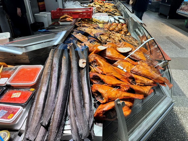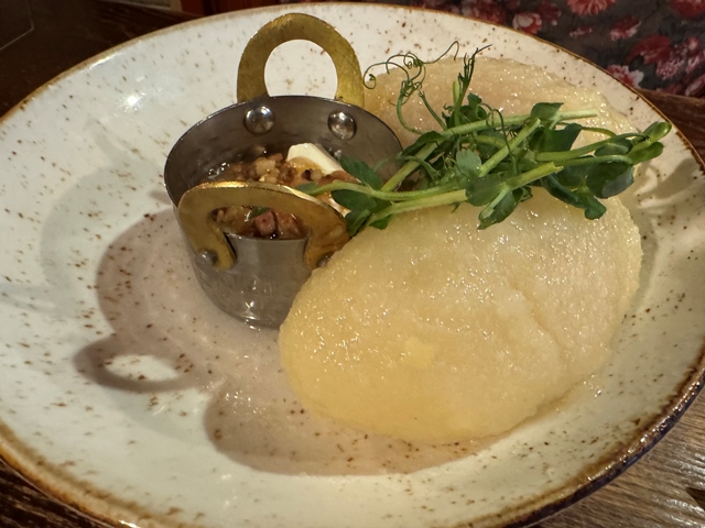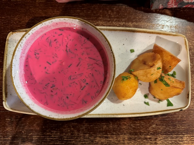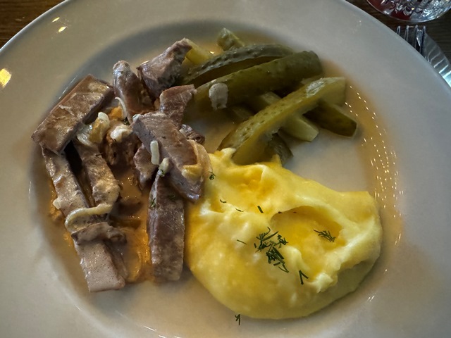 Para comer elegimos varias especialidades típicas lituanas, como los cepelinai, unos ñoquis o dumplings de puré de patata rellenos de carne recubiertos de salsa ( se llaman así porque su forma parece de un zepelín).