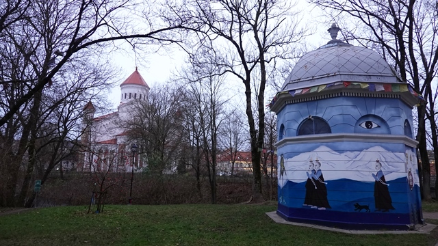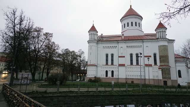 Subiendo por la calle Didžioji, llegamos hasta esta iglesia ortodoxa frente a la cual nos encontramos con un pequeño mercadillo, la iglesia fue construida en el siglo XIV por encargo de María Yaroslavna de Vitebsk, primera esposa de Algirdas Gran Duque de Lituania, quien posteriormente fue enterrada allí en 1346.